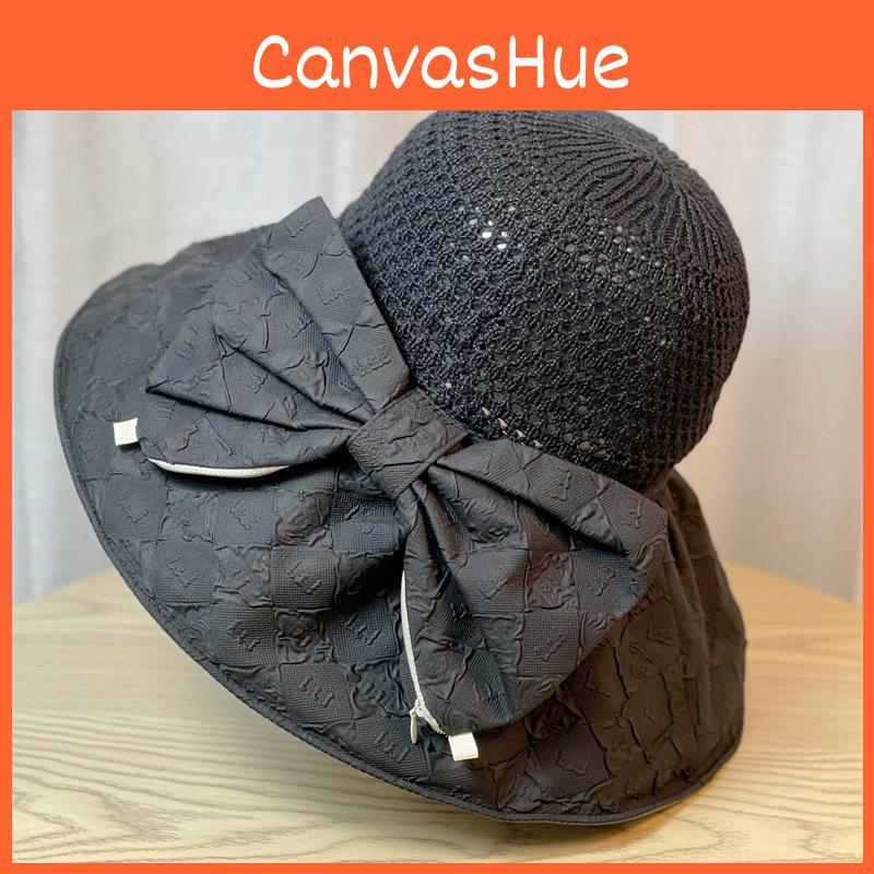 Stylish Round Top Sun Hat With Bow Tie Summer Beach Uv Protection Fisherman Hat