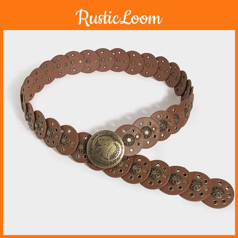 This vintage-style wide belt features a rust-proof, retro round rivet design with punk-inspired eyelets, adding a bold touch to any outfit. Made of faux leather, it measures 114CM in length and 5CM in width, with a durable alloy buckle and needle closure. Ideal for adding a rebellious edge to casual or artistic ensembles, its perfect for autumn fashion. Wipe clean with a damp cloth to maintain its finish.