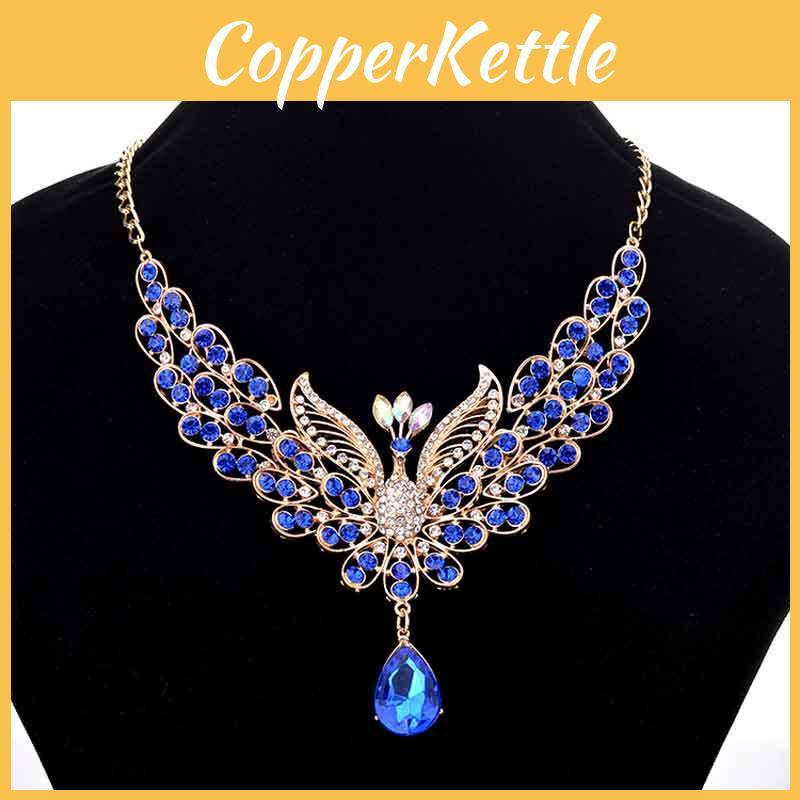 Exquisite Retro Peacock Necklace With Colorful Ear Studs Rhinestone Jewelry Set