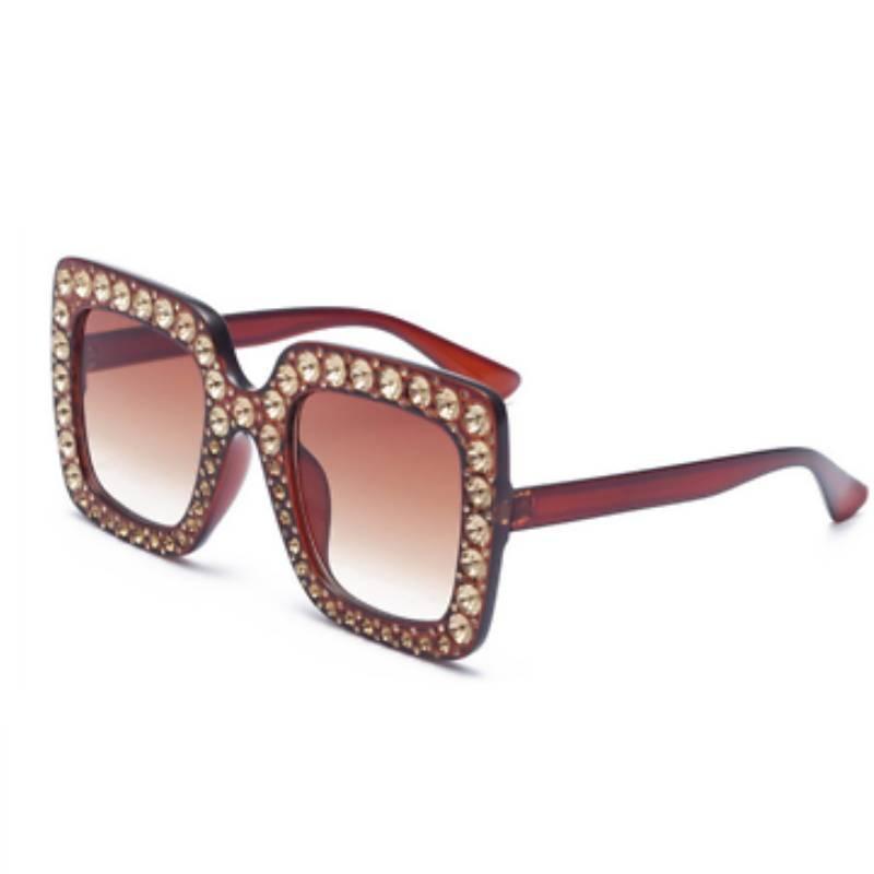Trendy Square Frame Sunglasses With Oversized Rhinestones For Unique Fashion Style And Uv380 Protection