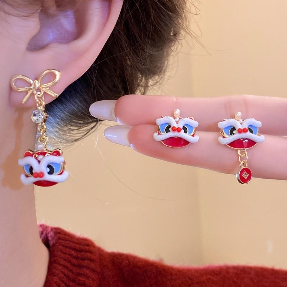 Awakened Lion Lion Dance Ear Studs Year of Horse Drop Earrings Fashion Jewelry