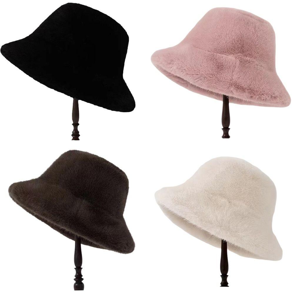Casquette Panama Femme en Fourrure Douce Chapeau Bob Uni en Peluche Chapeau de Pêcheur Tendance