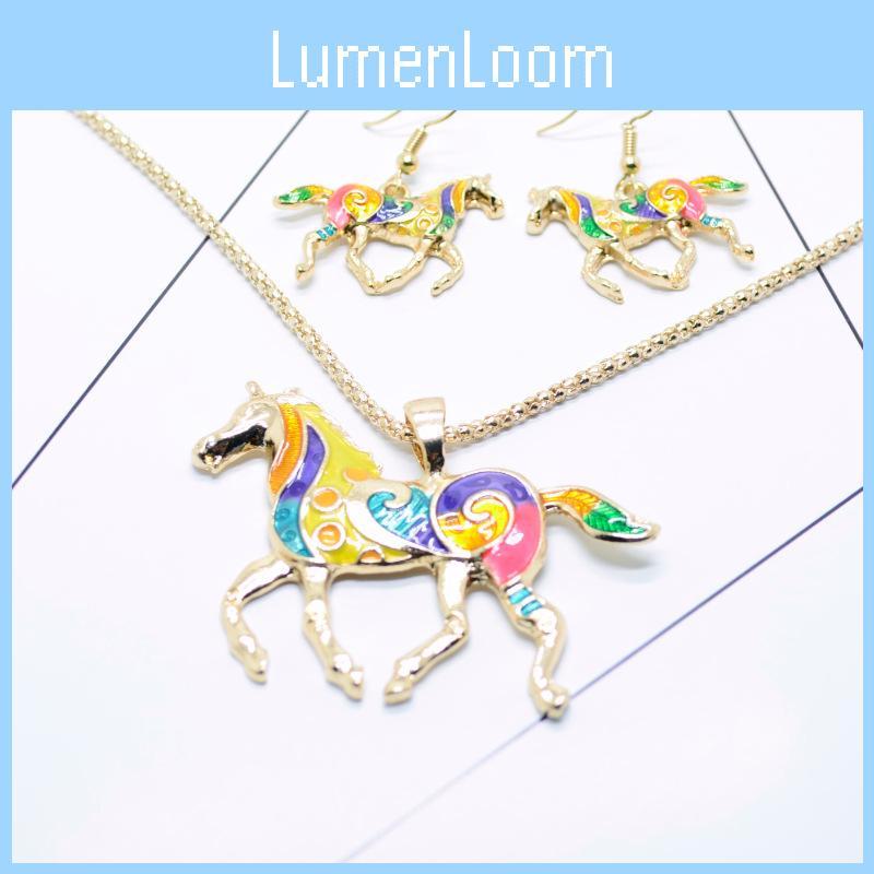 Ensemble Collier Boucles d'oreilles Pendentif Poney Arc-en-ciel Tendance avec Design Dégradé Coloré