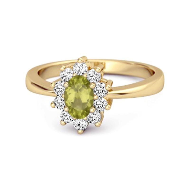Bague halo en argent sterling 925 avec Péridot ovale 7x5mm (1.28 Ct) et pierres CZ. Une pièce lumineuse et intemporelle pleine d'éclat joyeux.