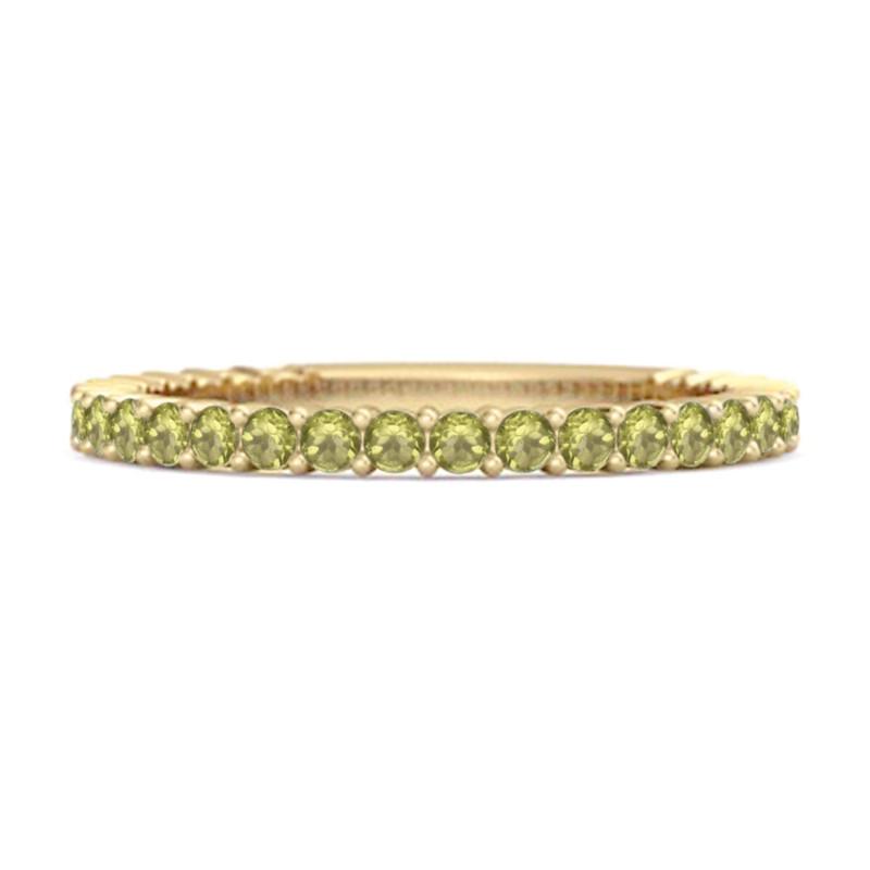 Alliance éternité en argent sterling avec 0,69 ct de péridots ronds de 2 mm. Une bague empilable lumineuse et élégante pour le quotidien ou à offrir.
