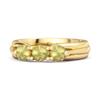 Sterling silver ring featuring 3mm round peridot gemstones, 0.30 Ct total. A vibrant green triple-stone design for everyday elegance.
