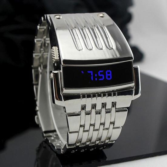 Montre-bracelet LED Mode Économie Acier Inoxydable Automatique Énergie Acier Calendrier Numérique Montre de Sport