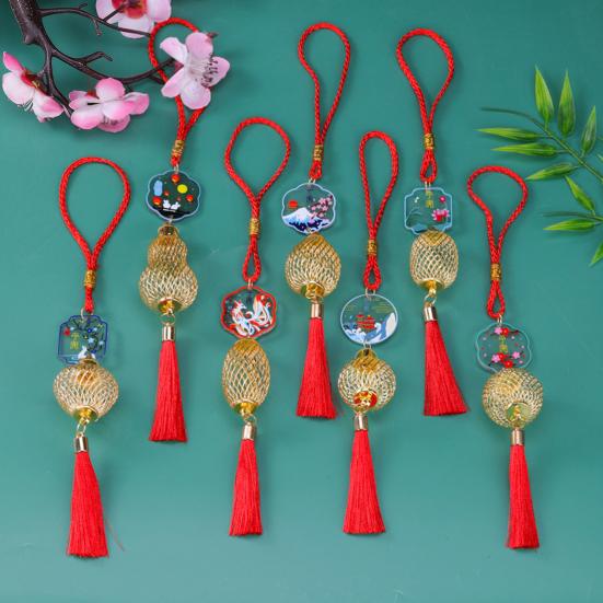 Celebrate the New Year with this exquisite new year pendant, a versatile decoration perfect for doors, windows, desks, and car interiors. Crafted with high-end metal hollow lantern and gourd designs, complemented by elegant tassels and finely detailed hanging tags, it offers a sophisticated alternative to ordinary plastic ornaments.