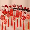 Décorations du Nouvel An Chinois Ornements Plaque en Bois avec Pompons Pendentif Fu Rouge Porte-Bonheur pour Plantes Bonsaï d'Intérieur Décoration Maison Bureau Fête du Printemps