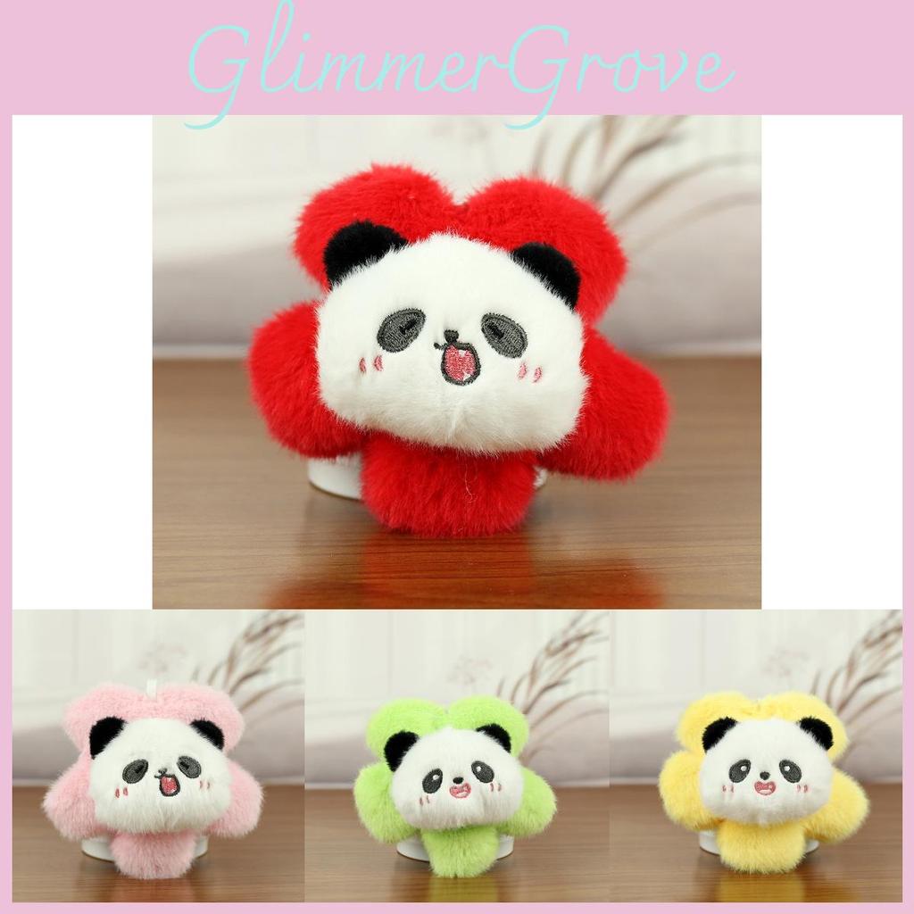 Adorable Colorful Panda Plush Keychain Accessory With Cute Flower Design For Bags
