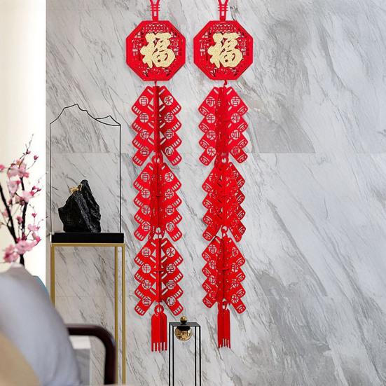 Célébrez la Fête du Printemps avec ces ornements auspicieux « Fu », symbolisant les bénédictions et le succès.. Fabriqués à partir de matériau non tissé sûr et écologique, ils sont durables, réutilisables et parfaits pour une utilisation aussi bien en intérieur qu'en extérieur.. Le caractère doré « Fu » associé à des motifs festifs traditionnels ajoute une atmosphère animée à vos célébrations du Nouvel An..