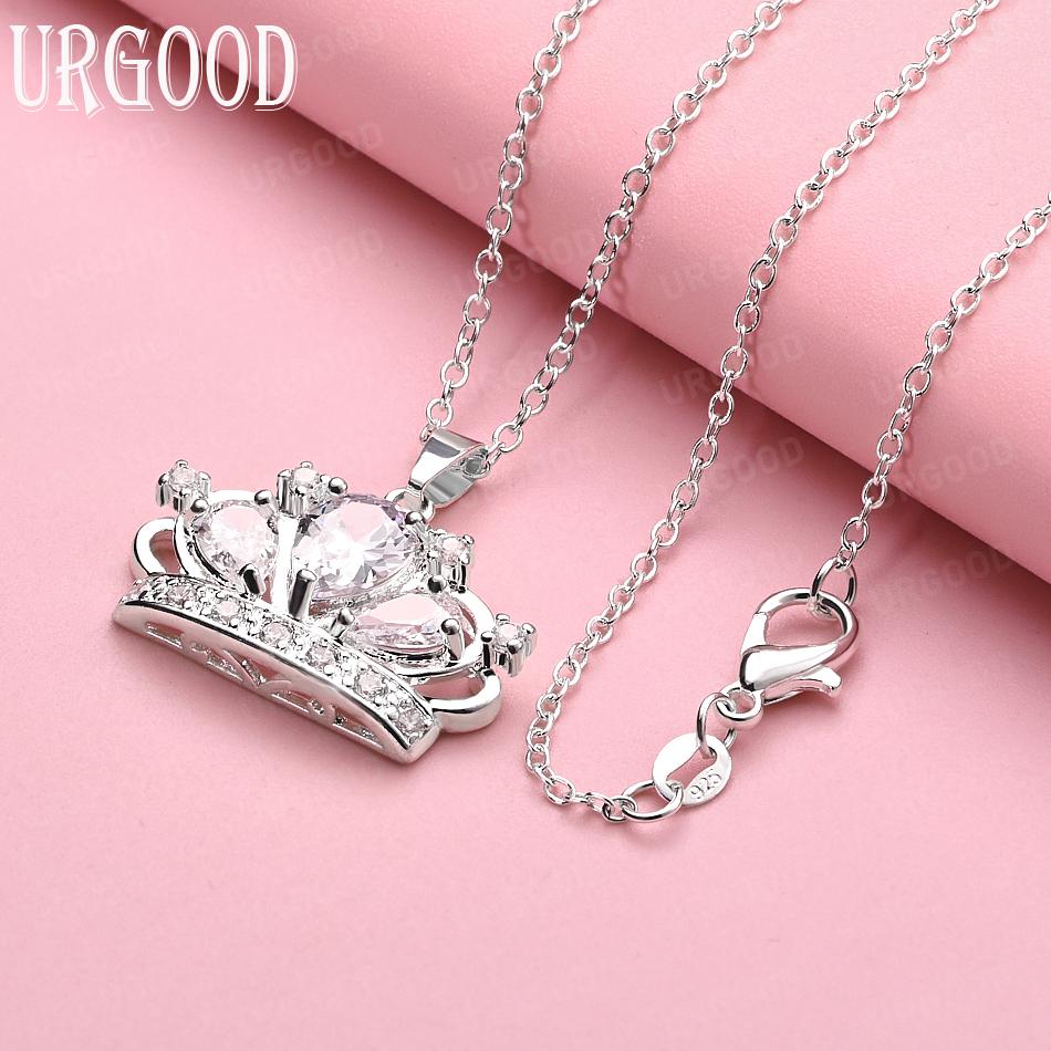 Collier Pendentif Couronne Zircon AAA Argent Sterling 925 Bijoux de Mariage Mode