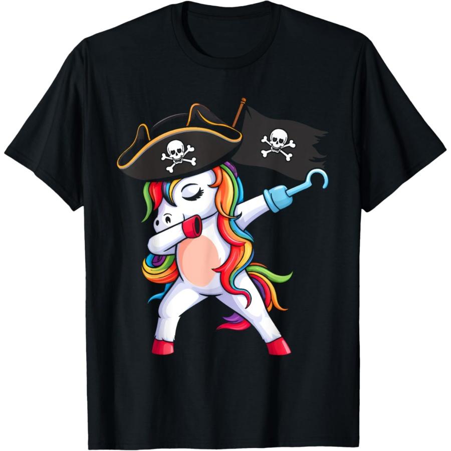 Dabbing Unicorn Pirate Girls Kids Funny Halloween Costume T-Shirt