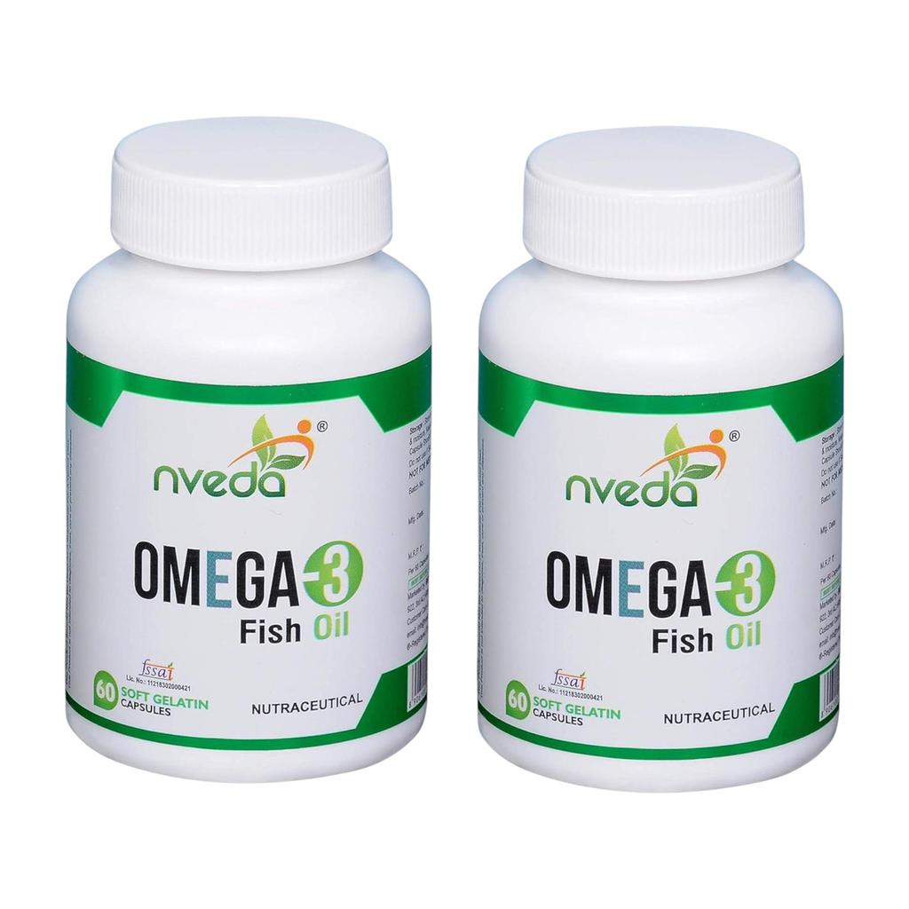 Nveda Omega-3 Fish Oil 1000mg Capsules for Men & Women 60 Softgels Heart Brain Eye Joint Support Pack of 2