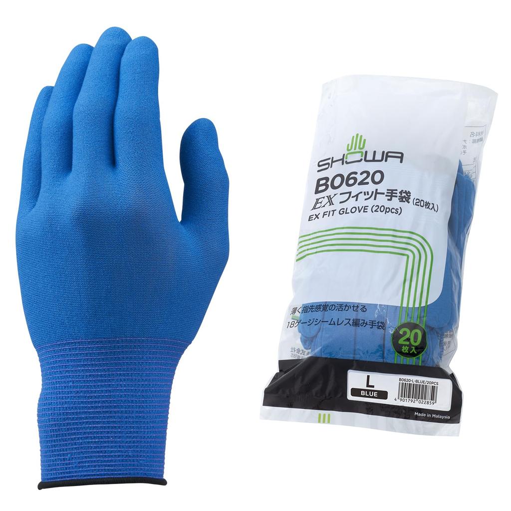 Showa Gloves B0620 EX Fit 20 1 bag [Inner Gloves] Gloves, count, Large, Blue,