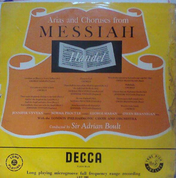 ARTISTE: Haendel, Jennifer Vyvyan, Norma Procter, George Maran, Owen Brannigan, The London Philharmonic Choir & Orchestra Dirigés par Sir Adrian Boult