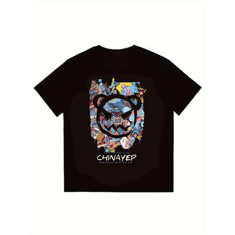 T-shirt noir avec imprimé graphique Chinayep et design texte pour un style streetwear décontracté