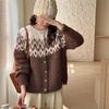 Une nouvelle veste pull jacquard à blocs de couleurs rétro pour femmes, un cardigan tricoté décontracté, ample et doux pour l'automne et l'hiver