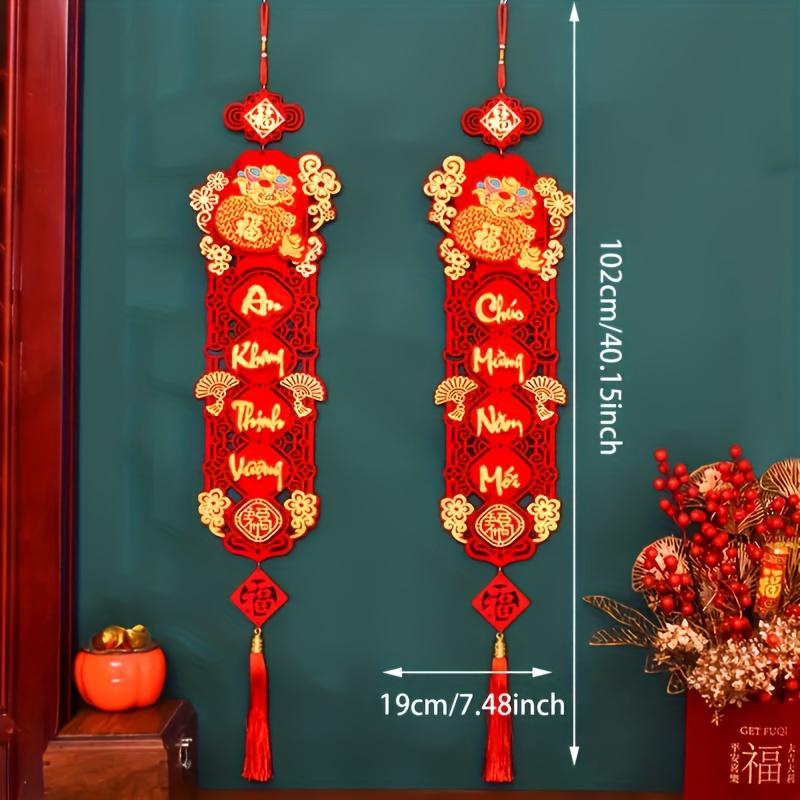2pcs New Year Decorations Spring Festival Couplets Hollowout Red Hangings Sign Red Couplets New Year Banner 2025 Spring
