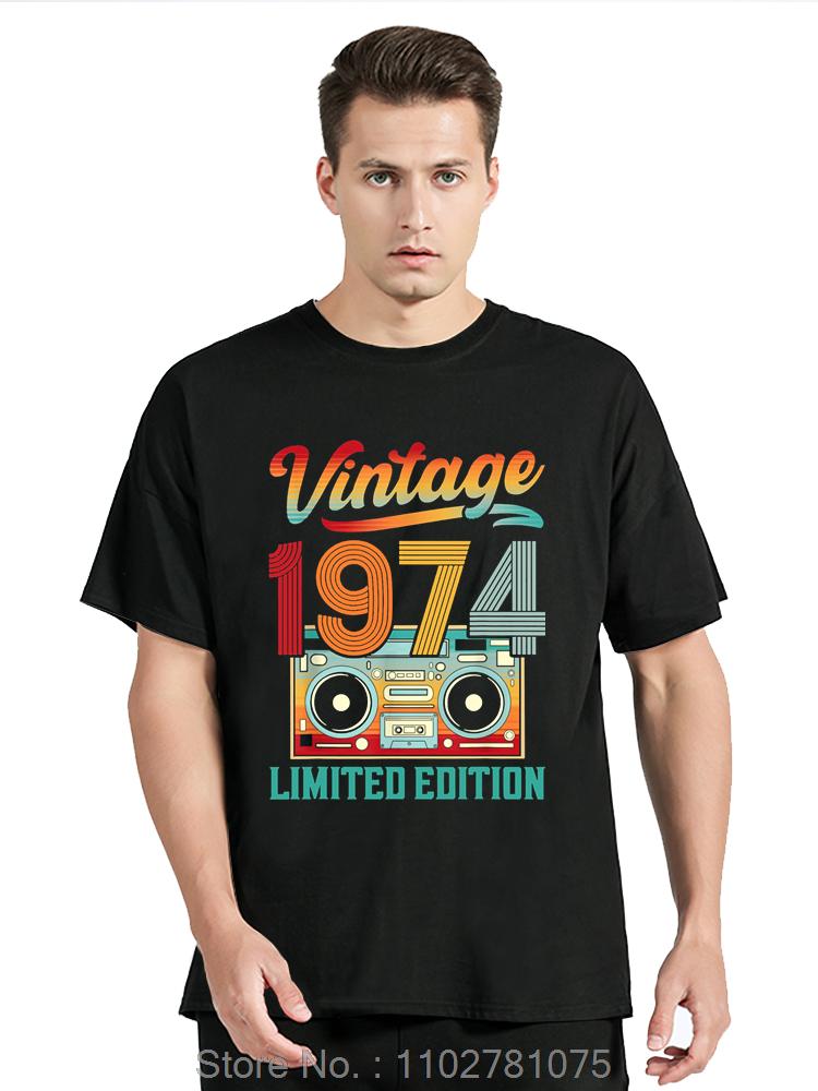 Born In Vintage 1974 Oversized T-shirt Limited Edition Cassette Men Clothing Vintage Cotton Tshirt Funny Tees Fitness T Shirt