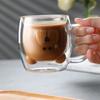 Lovely Glass Mug Transparent Double-Layer Coffee Mug Cartoon Bear Cat Prevent Scald Glass Cup Breakfast Milk Lemon Juice Cup Mug