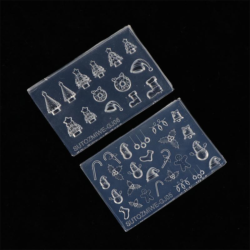 Moule à Ongles en Silicone 3D Pour Nail Art DIY Arbre de Noël Bonhomme de Neige Cloche Bonhomme en Pain d'Épices Modèle Design Transparent Outil de Manucure