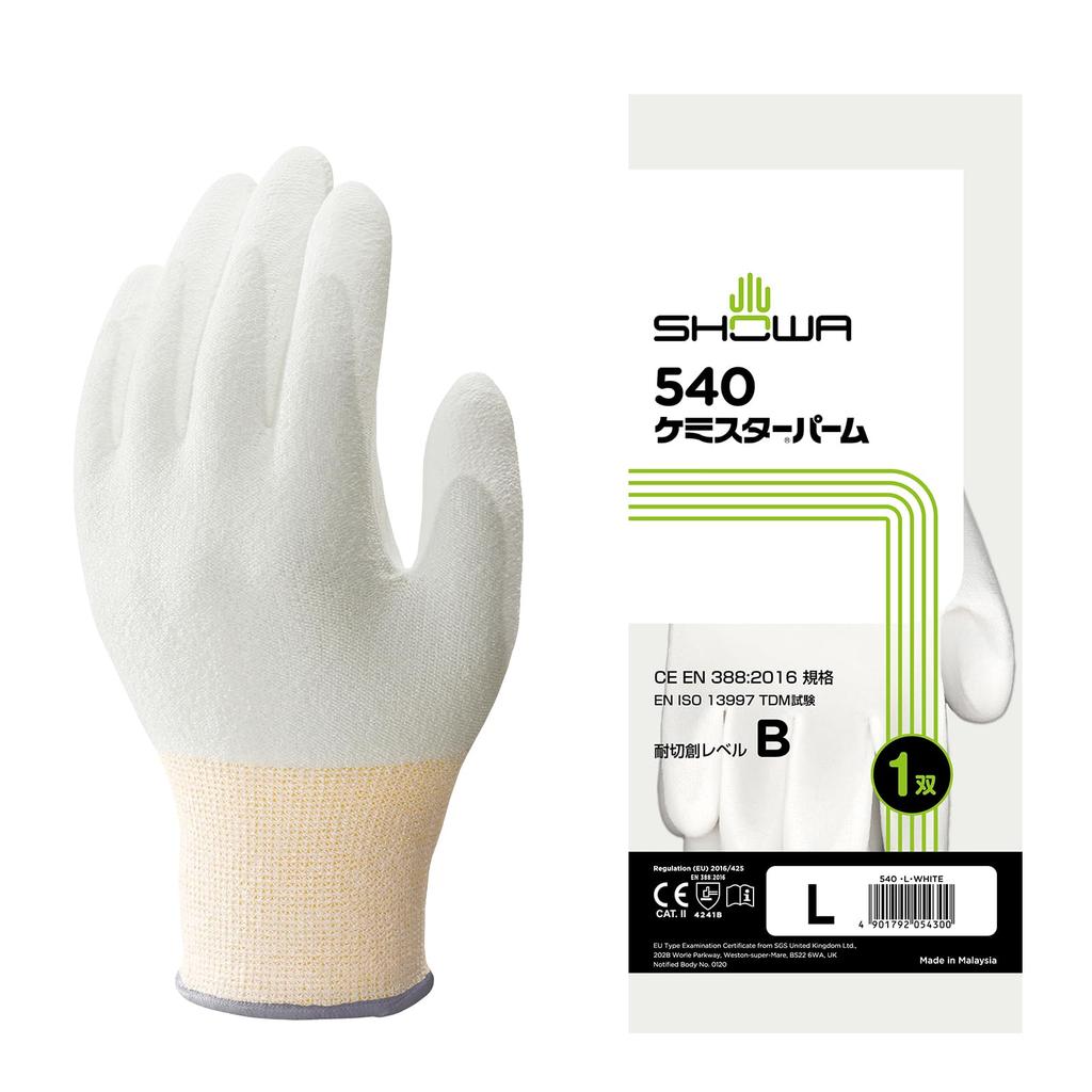 Showa Gloves 540 Chemistar Palm Size 1 Pair [Cut Resistant] No. White, L,