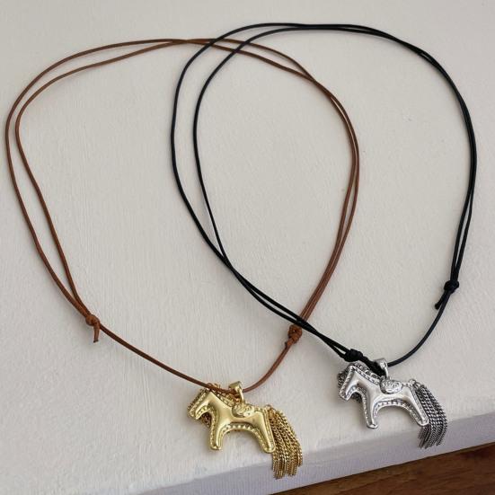 Collier Pendentif Cheval Charme Cheval en Alliage avec Queue à Gland Crinière Collier Animal Décontracté avec Corde Réglable pour Femmes Hommes Cadeau d'Anniversaire