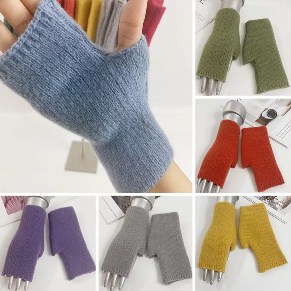 Hand Protector Cashmere Gloves Exposed Finger Knitted Gloves Half Finger Mittens Women Girl