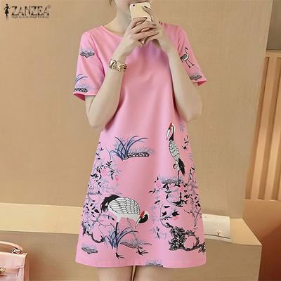 ZANZEA Women Casual Hollow Embroidered Patchwork Summer Short Sleeve Dress