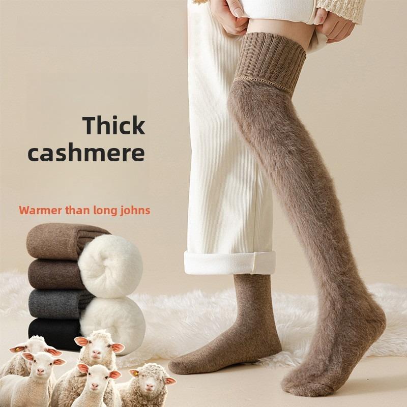 Female Autumn and Winter Plus Velvet Thickened Warm Cold Not Foot Cashmere Knee Socks