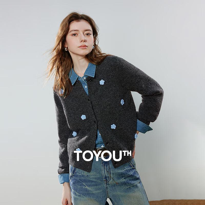 Chuyu Women's Round Neck 3D Floral Knit Cardigan