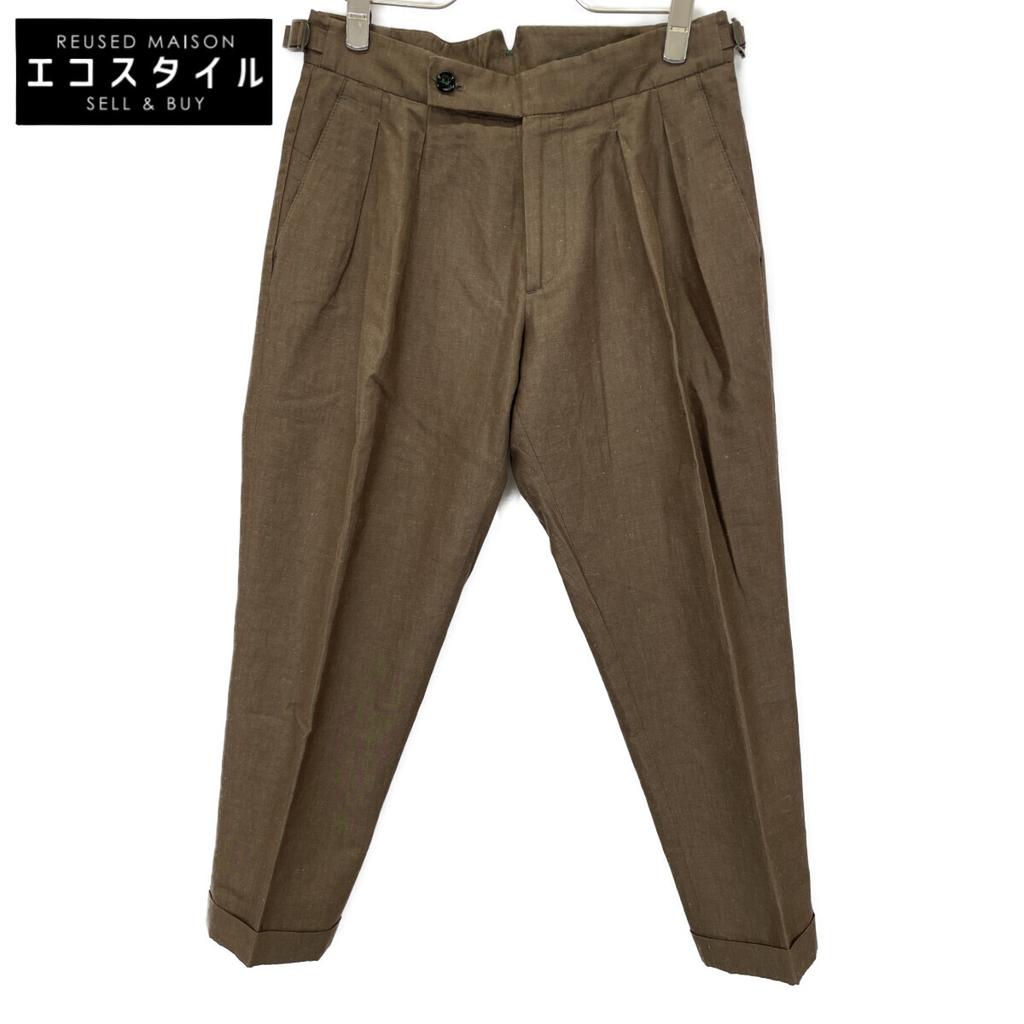 BERWICH Brown Scotch Cotton Linen Solid 2-Pleated Cropped Pants Bottoms 44 BrownUsed