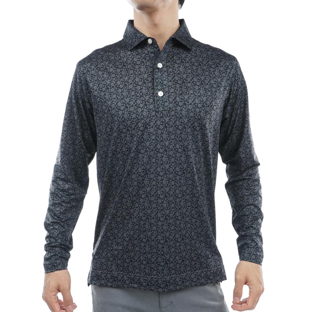 FootJoy Modern Classic Sketch Flower Print Long Sleeve Golf Shirt, Men's, Black, XL, FJ-F23-S03