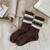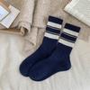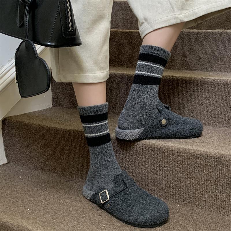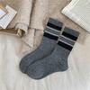 Striped Patchwork Wool Pile Socks, Dark Grey Socks, Women's Autumn and Winter Thickened Cashmere Mid-calf Socks