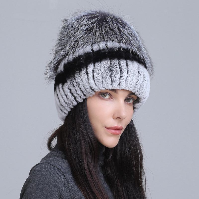 New fur hat Rex rabbit hat thickened versatile fox hair mushroom hat women's winter warm hat