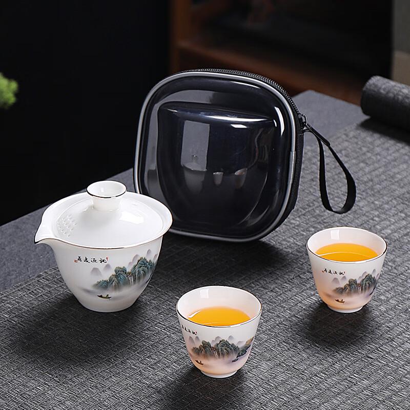 Shangqi Mutton-Fat Jade Style Portable Ceramic Tea Set