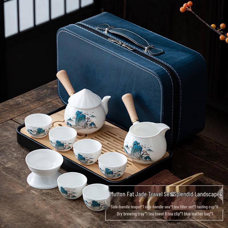 Xunyi Suet Jade White Porcelain Travel Tea Set