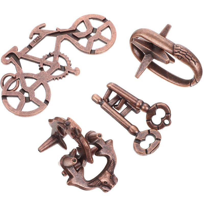 Magic Baffling 4PCS Metal Brain Teaser Puzzles Educational IQ Test Toys Mind Games for Children Adults Kids Novelty Gifts