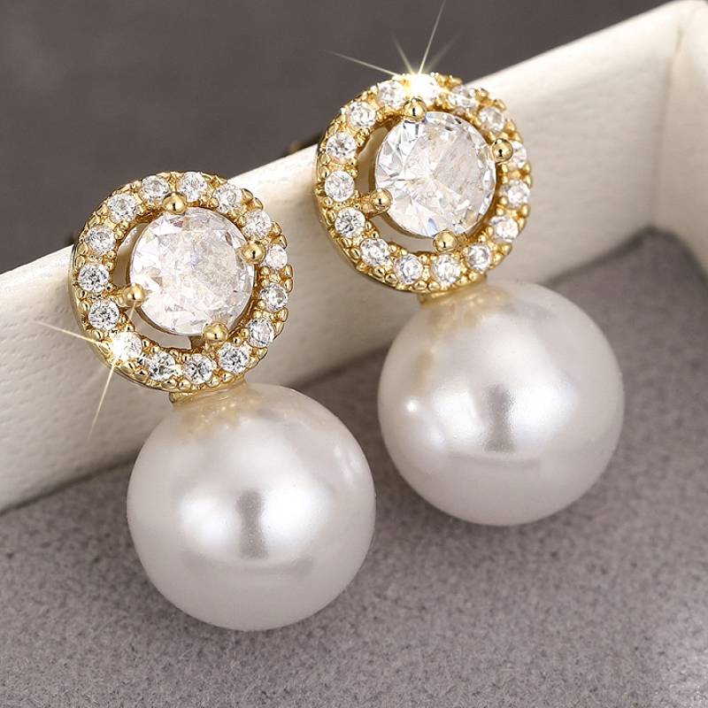 Huitan Imitation Pearl Lady Stud Earrings Elegant Female Accessories for Party Engagement Trendy Versatile Jewelry with Shiny CZ