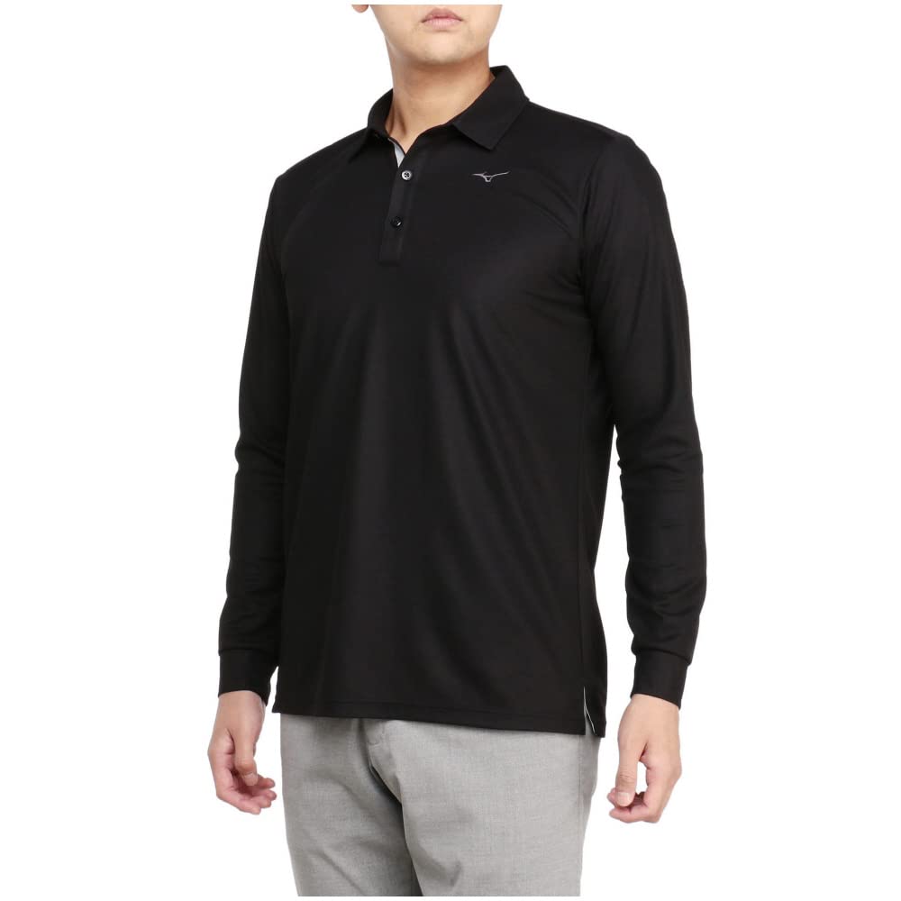 Mizuno E2MAAA30 Basic Long Sleeve Shirt with Size L Men's Collar, Stretch, Sustainable, Black,