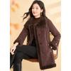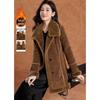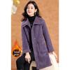 Kobel Women's Elegant Plush Lamb Wool Blend Color-Block Coat