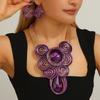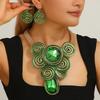 Ensemble de Bijoux Exagérés pour Femmes Collier Boucles d'Oreilles en Fil d'Aluminium Tissé Perles de Cristal