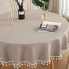 Nappe imperméable en coton lin de couleur unie style nouveau, nappe minimaliste avec dentelle et pompons, nappe pour table à manger, table basse, bureau, housse anti-poussière