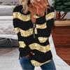 Womens Casual V-Neck Print Blouse Zipper Long Sleeves Sweatshirt Loose T-Shirt Tops
