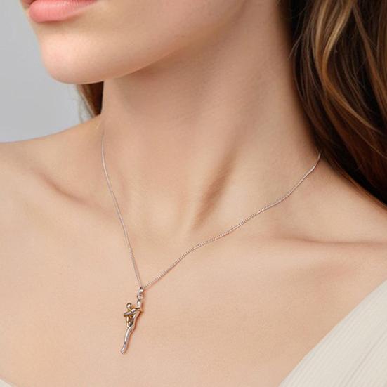 Ce collier ajustable est doté d'une chaîne de 45+5cm, permettant un porté polyvalent allant d'une longueur délicate au niveau de la clavicule à un style plus long parfait pour les tenues à col en V.. Conçu avec un contraste bicolore sophistiqué argent et or, le pendentif présente des lignes lisses et brillantes qui allient simplicité et élégance..