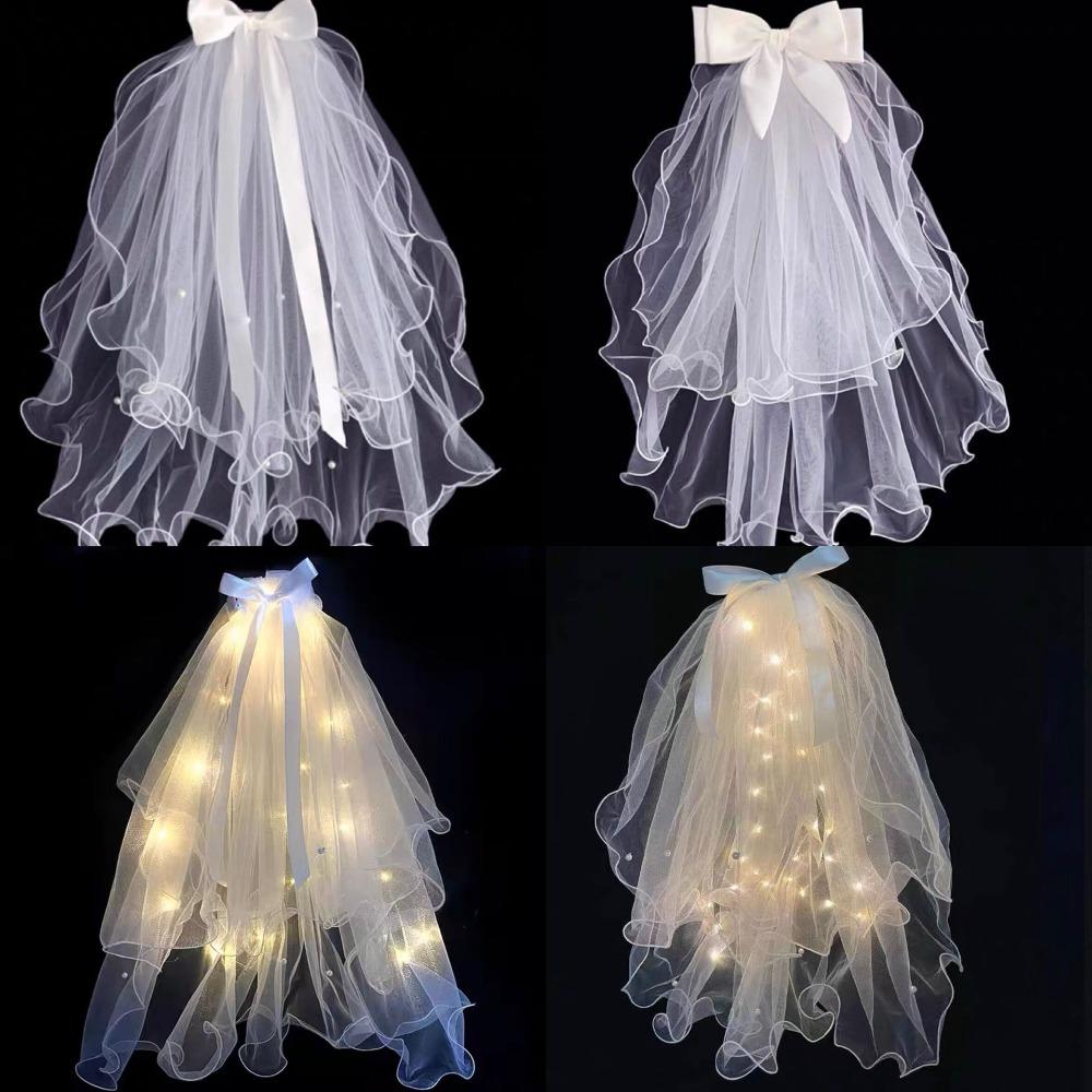Hair Accessories Glow Wedding Veil Bowknot Light Up Veil New Bride Wedding Veil for Women