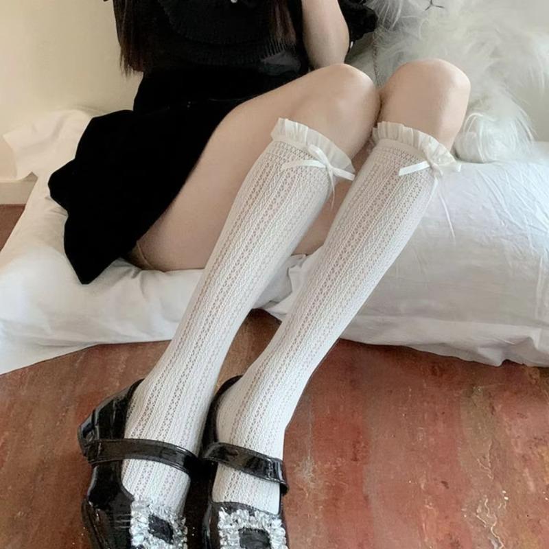 Chaussettes hautes en dentelle et résille mignonnes style rétro ballet chaussettes longues à froufrous douces assorties chaussettes mollet Jk bas résille pour femme fille
