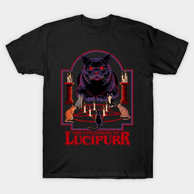 Men Black Print T-shirt The Conjuring Of Lucipurr No-Cut Transfer Paper Print Cotton Tshirt