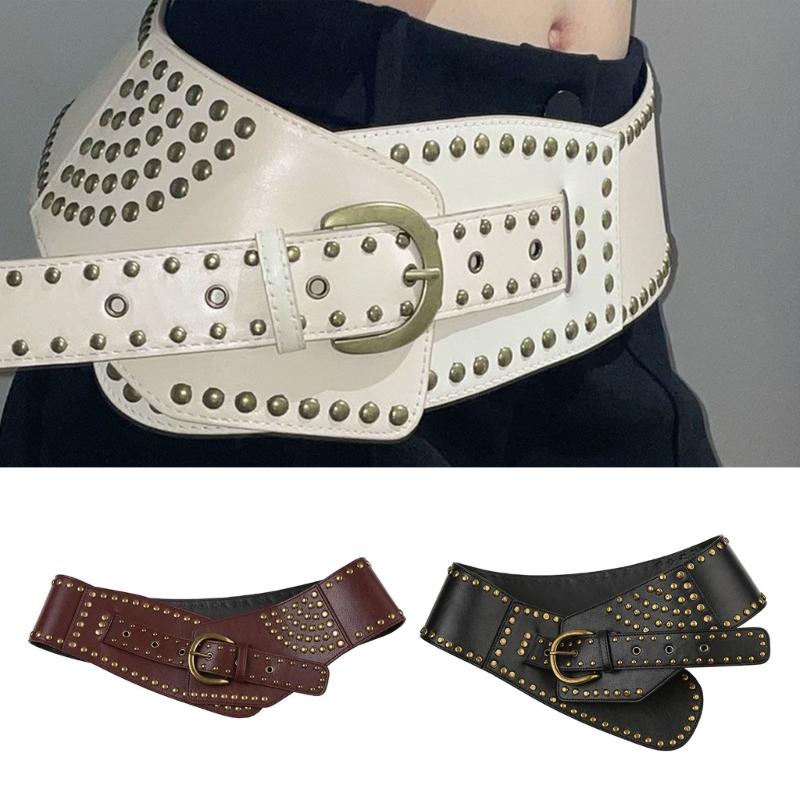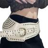 PU Leather Female Waist Belt with Irregular Buckle Rivets Decors PU Waist Belt Hollowed out Waistband for Coat Shirt
